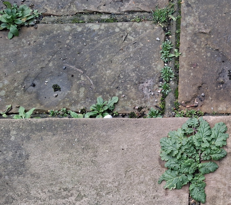 two dandelion-like rosettes on my patio which I suspect might be Crepis vesicaria