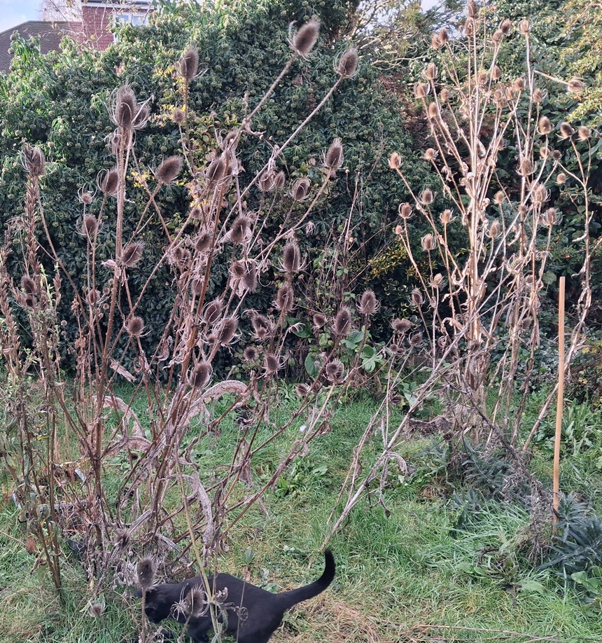 28-11-2025  teasel vivipary (or preocious germination) with my cat Pippa photobombing all my pics