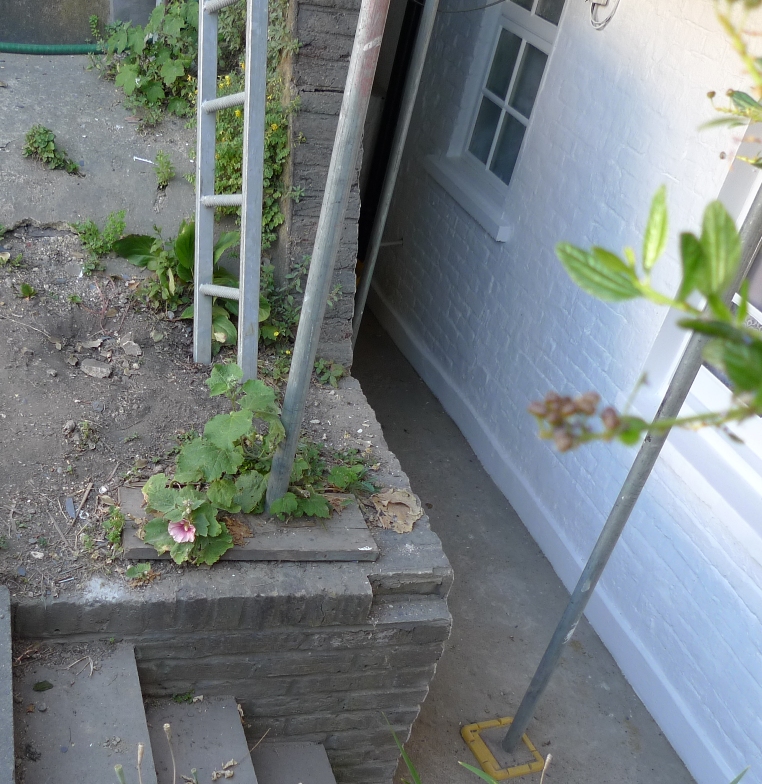 Hollyhocks are one of those plants that are so reliable and resilient like hyacinths. This one has survived the building site.
