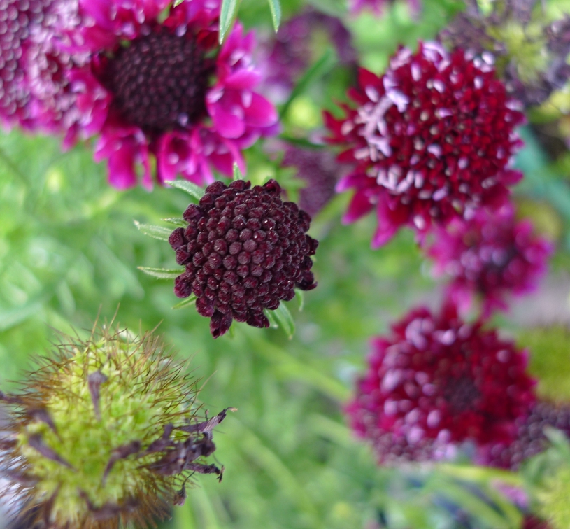 I try to mostly grow from seed so don't buy many flowers at the garden centre but when I saw this scabiosa Barocca at the garden centre yesterday I couldn't resist. Those tightly packed buds look so ripe and ready to burst and such a rich colour and I know bees love them (or did when I grew some before, have not tried this variety before).