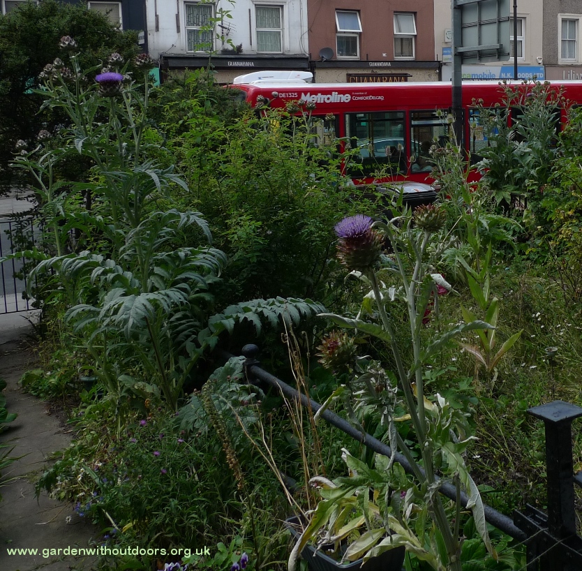at least in the front next door he hasn't started cutting anything down but maybe it's only a matter of time, teasels and artichokes
