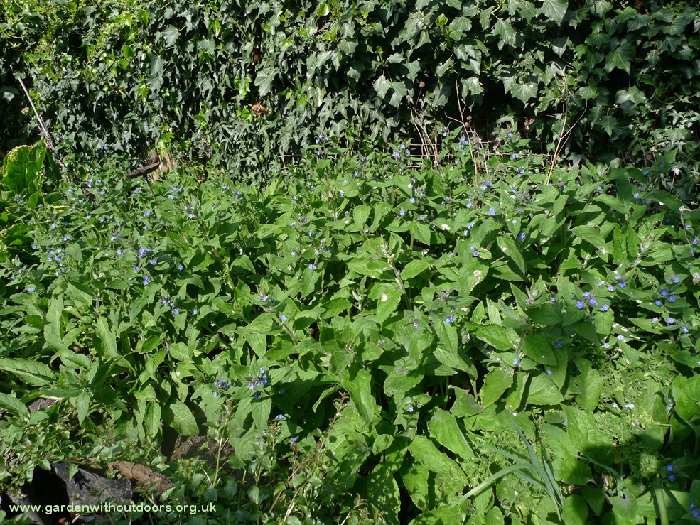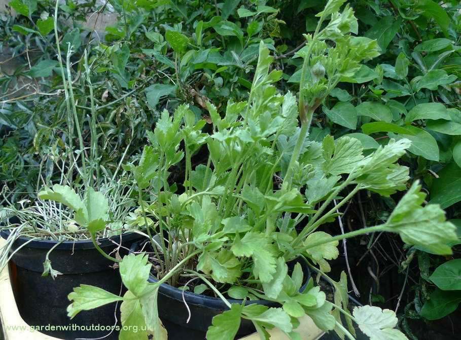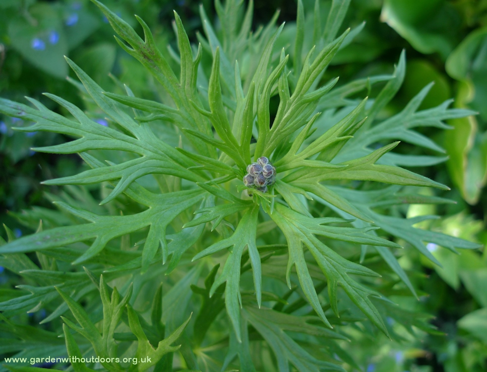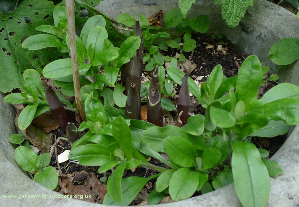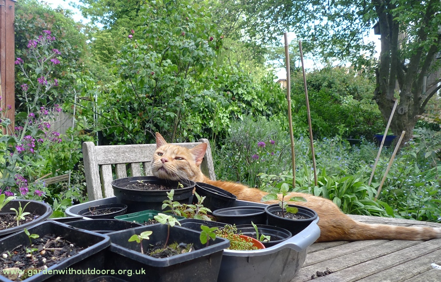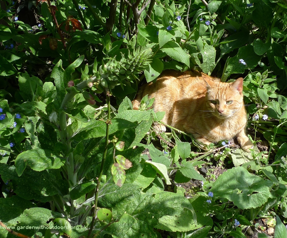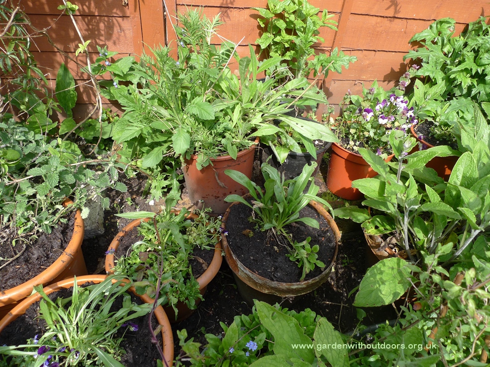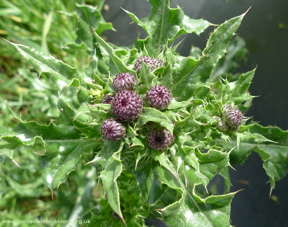 also in the front garden, lesser knapweed, first iris foetidissima flowers in the background to the right