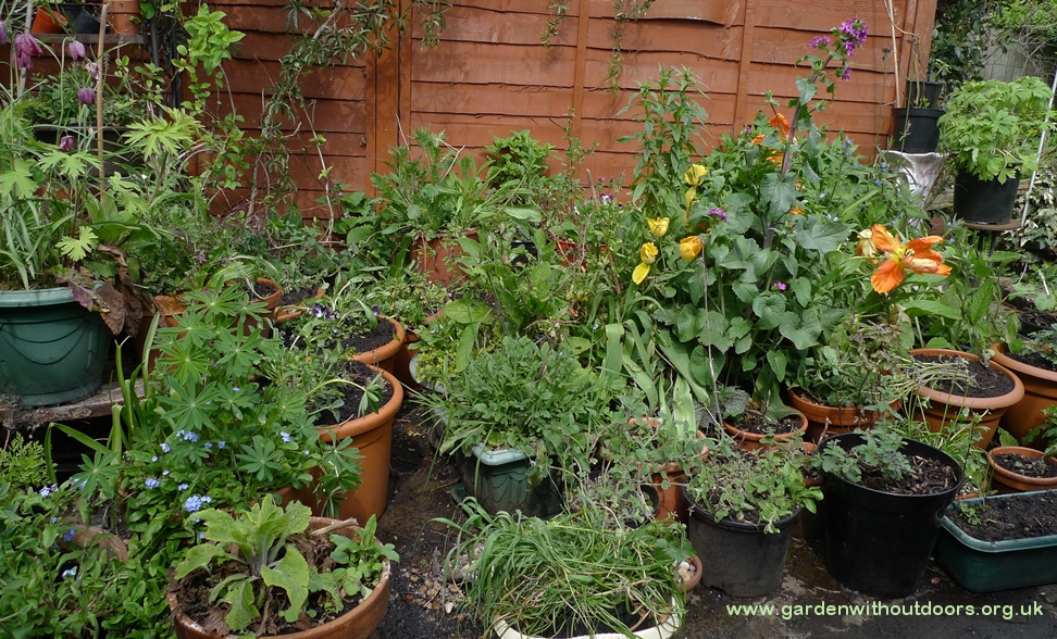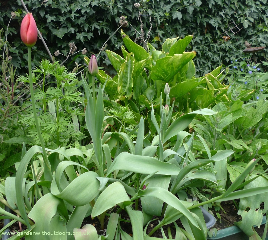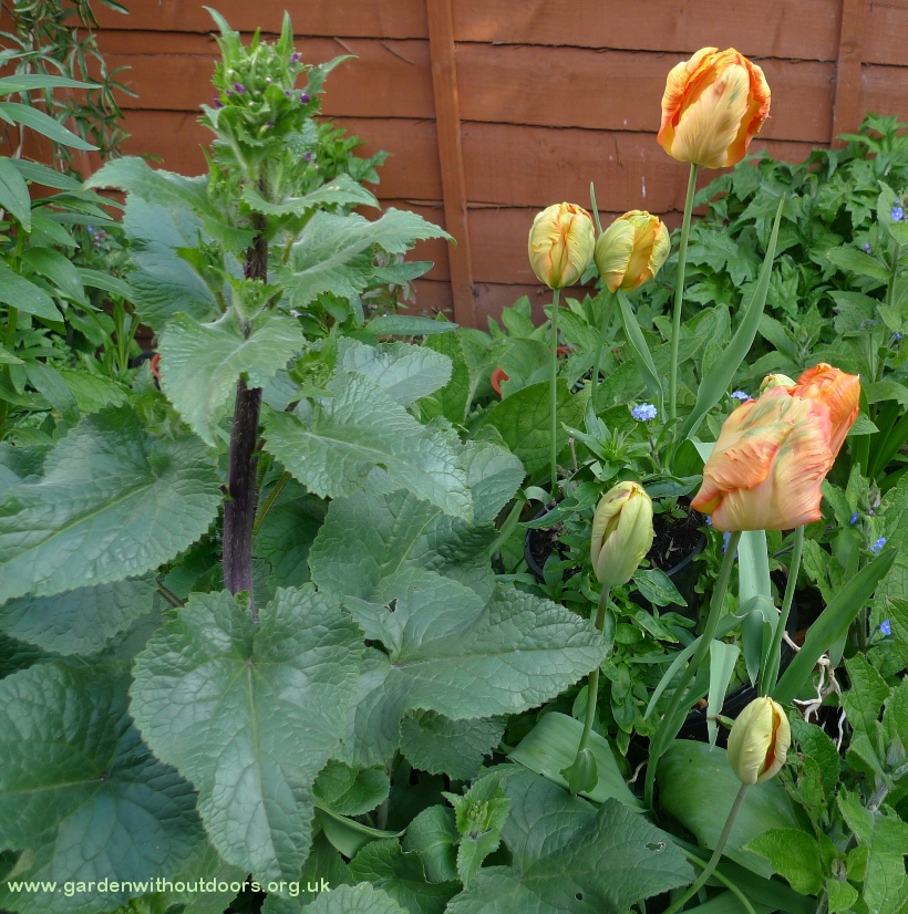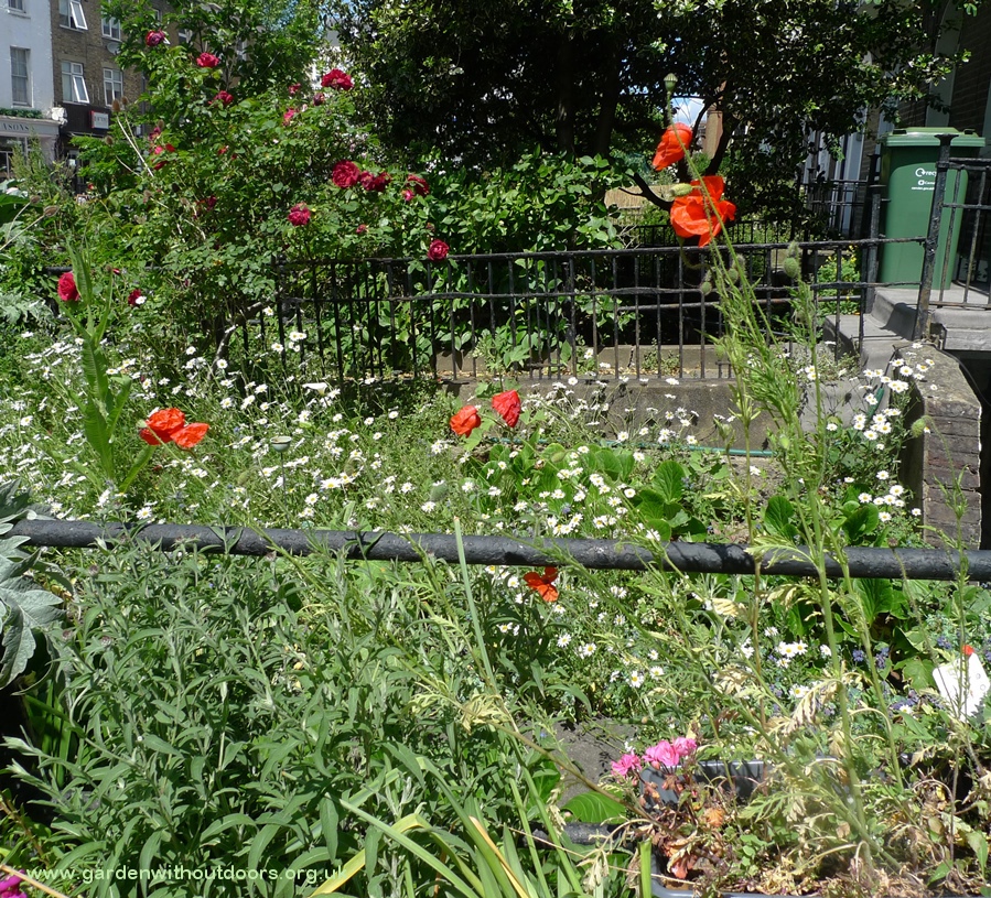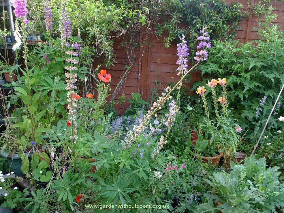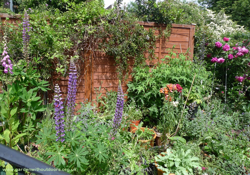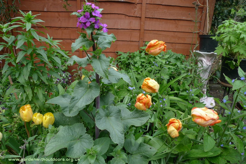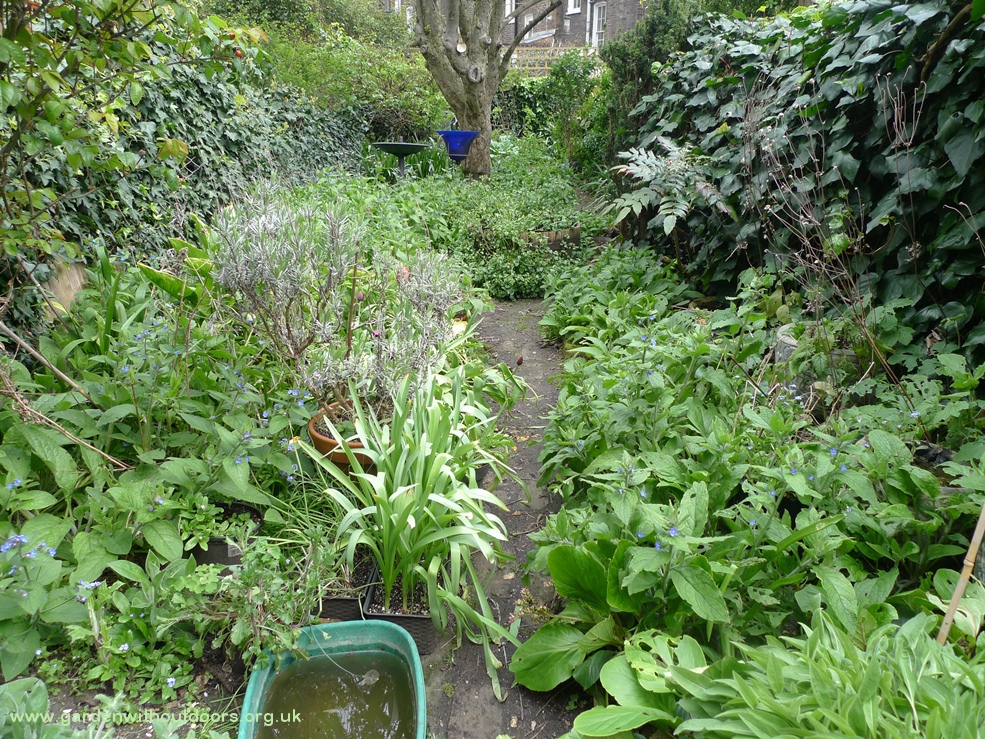 more sun in the front to help those iris bloom whereas in the back garden they are only in bud