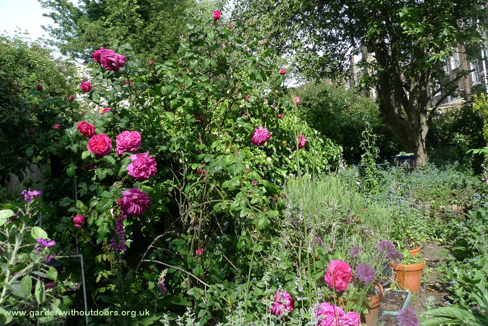 the rose has masses of flowers now (Young Lycidas?, I think, I didn't keep track so well of my plants when I bought it about 15 years ago)