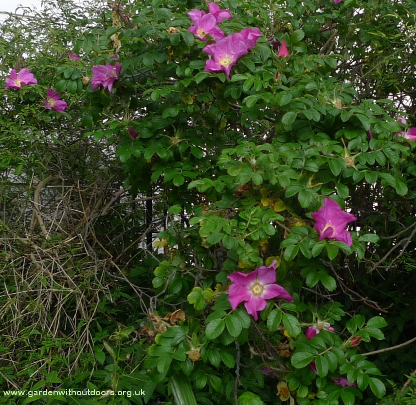 In addition to the rose above in my main flowerbed, I have this rosa rugosa in the front garden, blooming away with the minium of fuss, sometimes forgotten about. It was here when I moved in - it deserves more attention!