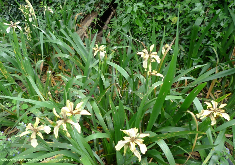 Sadly no iris flowers this year. They were choked by green alkanet and too dry. The weather has been terrible. Drought in my garden unless I water it and I'm only watering my pots. I can't water the entire garden.