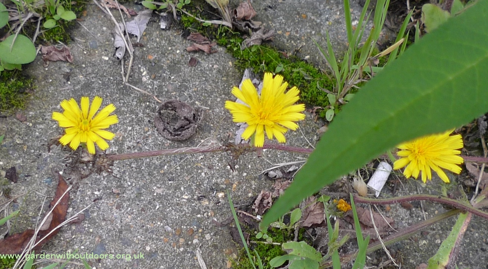 I removed the green alkanet seedlings and hope the fox and cubs seedlings in the middle will have a chance next year. They didn't this year. The lower left corner are my centaurea montana.