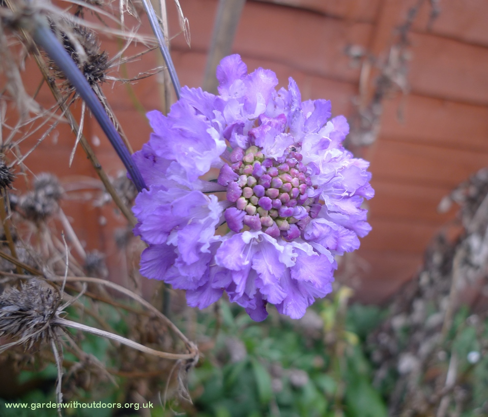 last week of August, I have a second flush of flowers from the scabious, both purple: