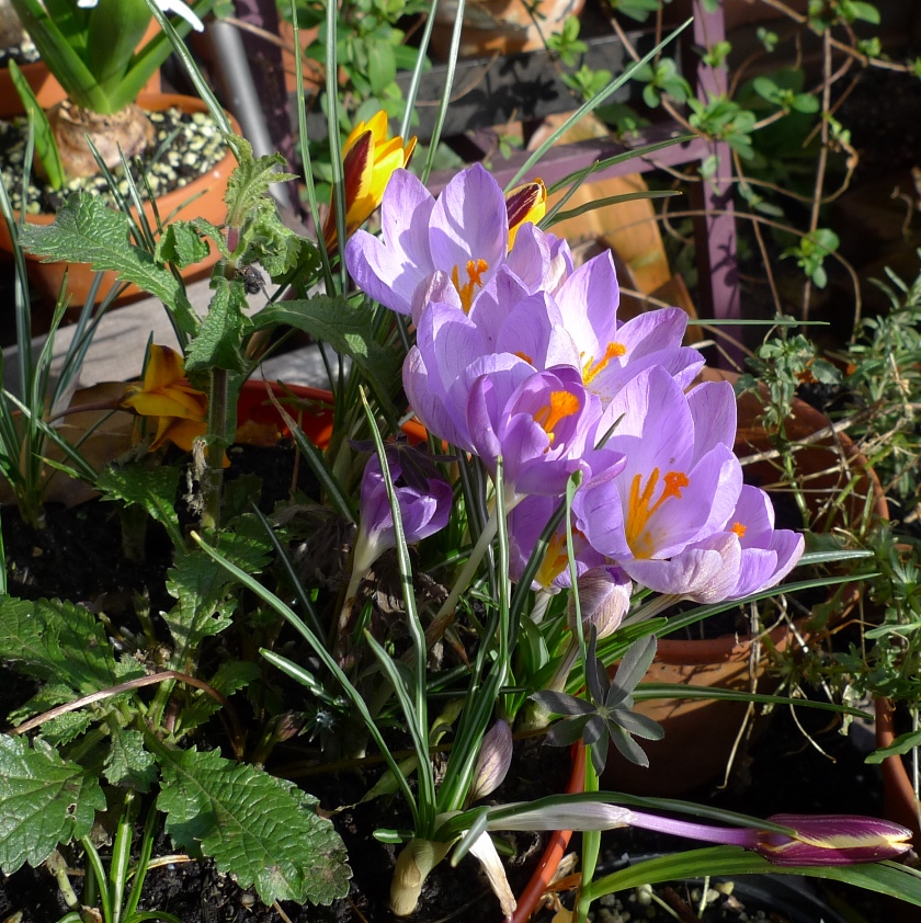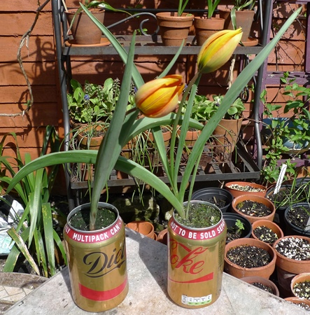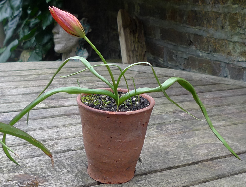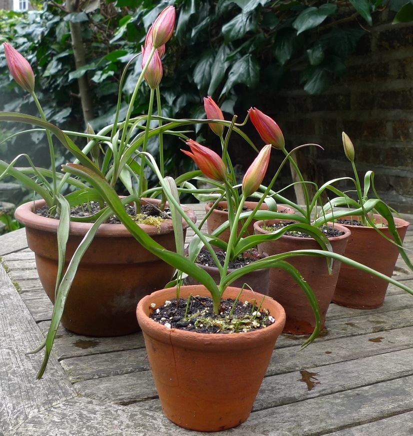 some of the Little Princess tulips in bloom, that pot on the right still has one in bud