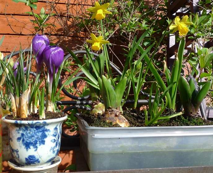 hosta 4 is the one sharing a pot with a large foxglove, which unfortunately provides shelter for the slugs, last I checked the slugs had eaten the tops of the sprouts, will take another pic and add it here