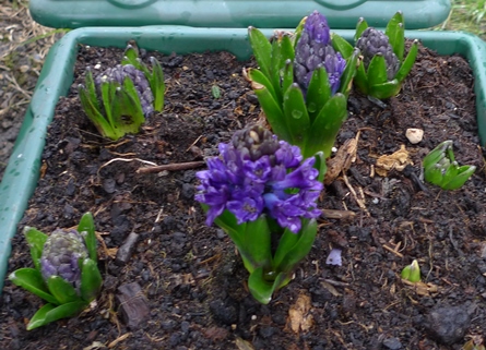 as it's so cold, everything is late this year, including the hostas, they are the spikey purple sprouts, the small green plants are green alkanet