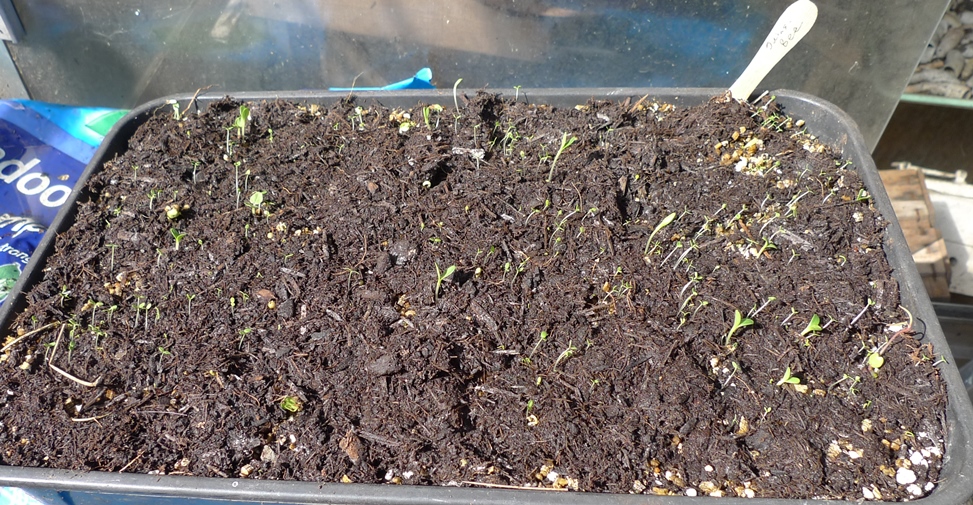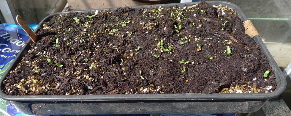 the 4 pots on the right should be thalictrum but so far only 1 seedling