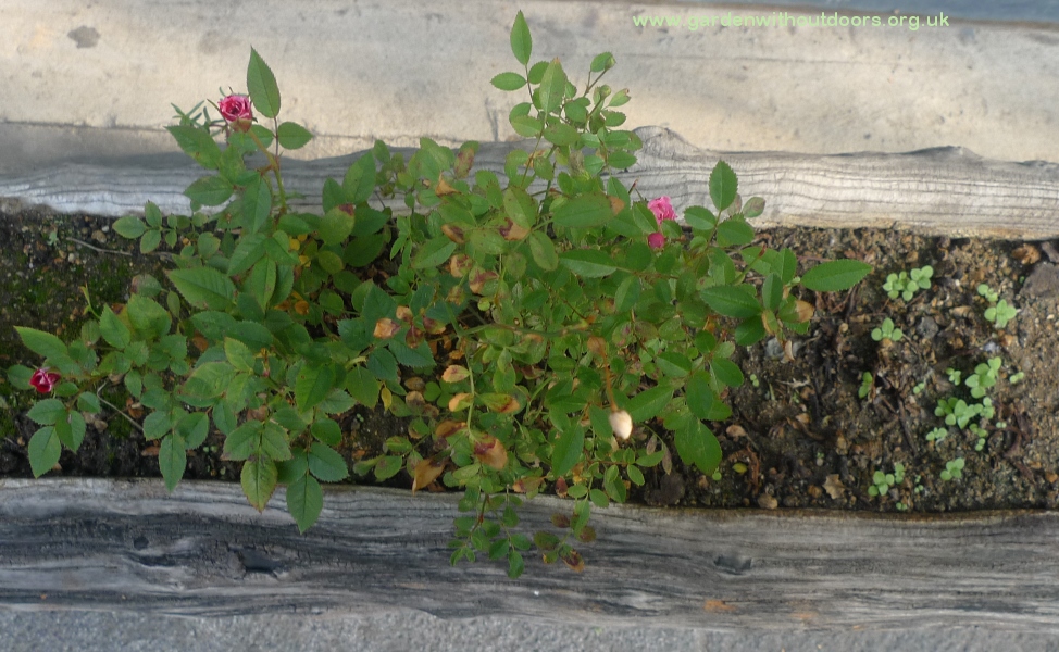 miniature rose in a planter