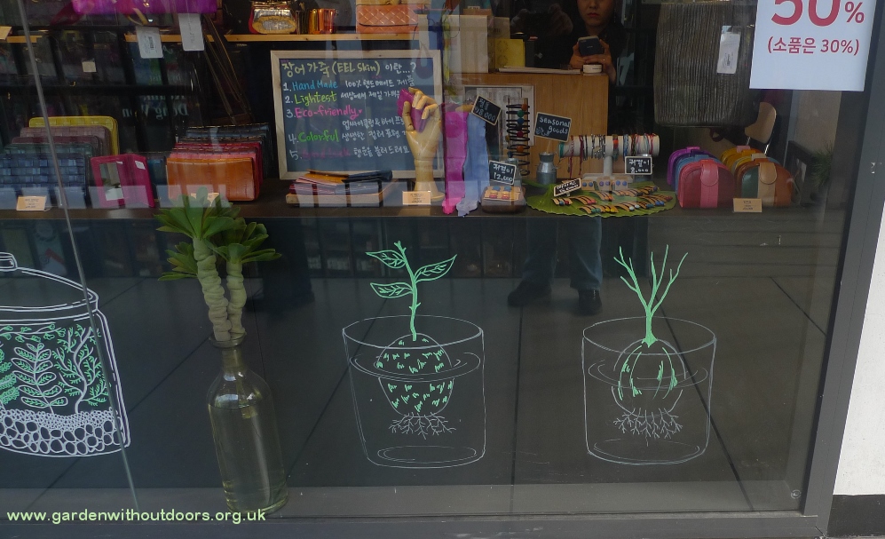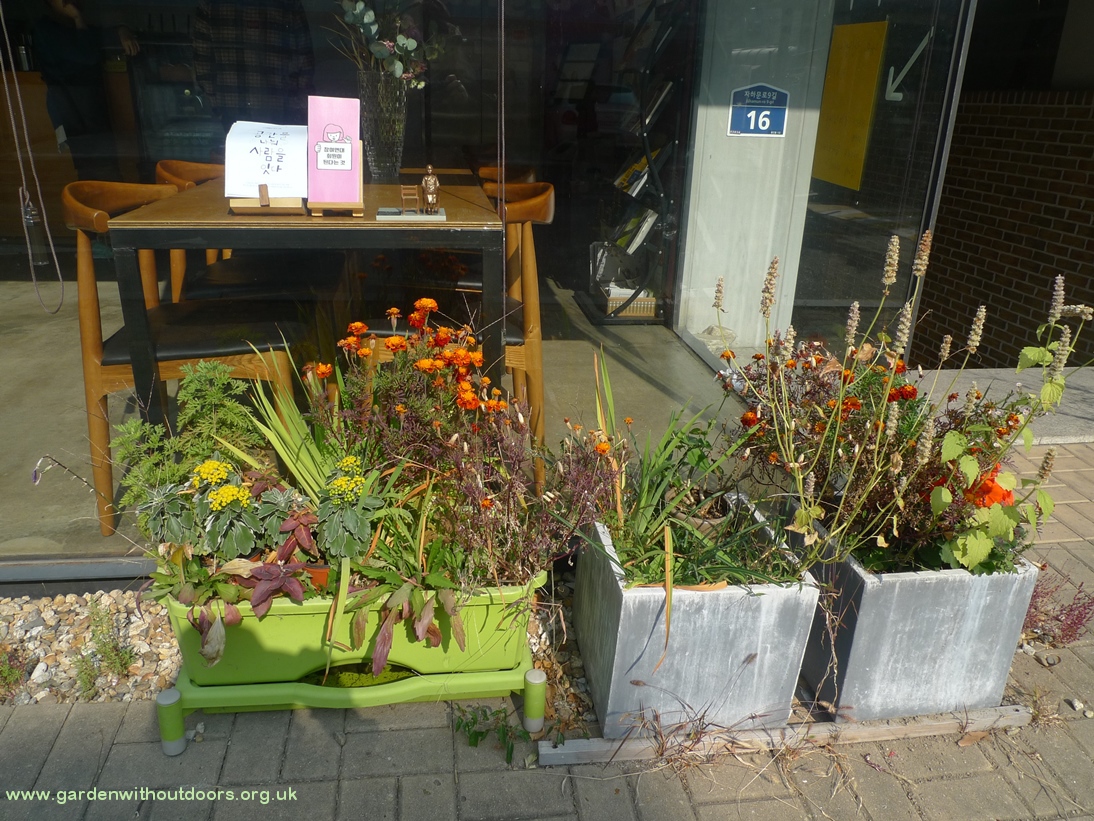 Seoul is an densely populated city full of skyscrapers without much ground for gardens, however small. But there are pots and trees everywhere - a desire for something growing and green despite the often concrete environment. This is a brief snapshot of everything I saw growing in Seoul end of October 2017.