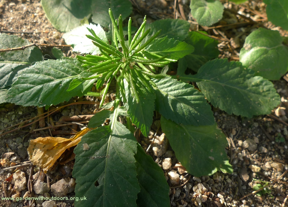 most of the flowers are spent on this cleome, giving a good view of the seed pods