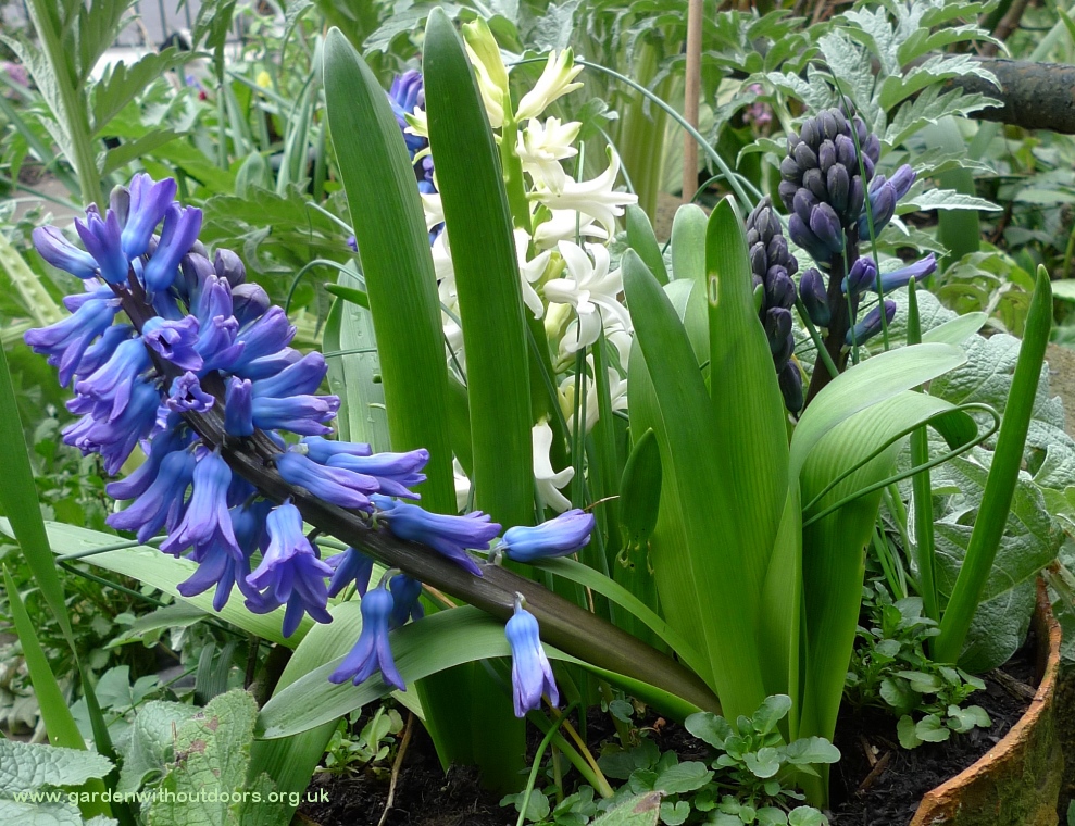 In February and March, some plants may be unclear whether they are bluebells or hyacinths, especially if you're not completely mad for hyacinths like me and know them very well. I do find bluebells annoying in my garden as they take up more space than they give in flowers and I'd like to grow something else. I want my Chinese lanterns to spread rather than any bluebells. I have tried to dig up the bluebells but it's difficult as they are very deep and difficult to dig up. Also, digging that flowerbed disturbs the Chinese lanterns which spread via their roots.