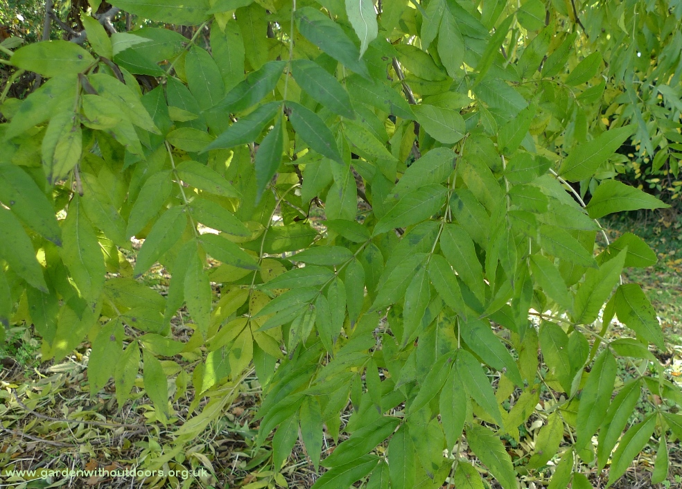 close-up of the distinctively-shaped leaves on the tree