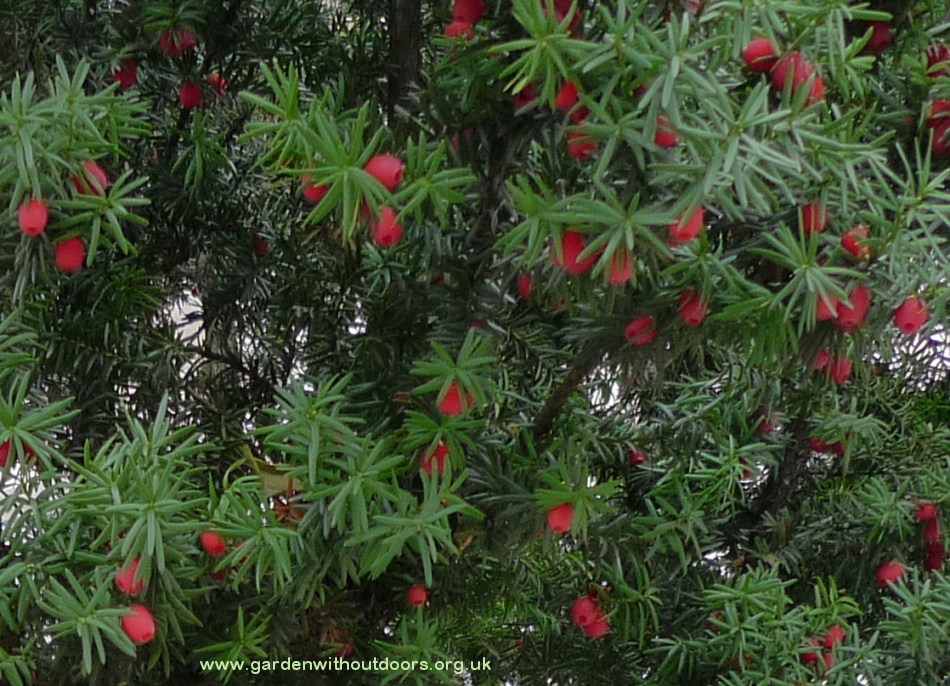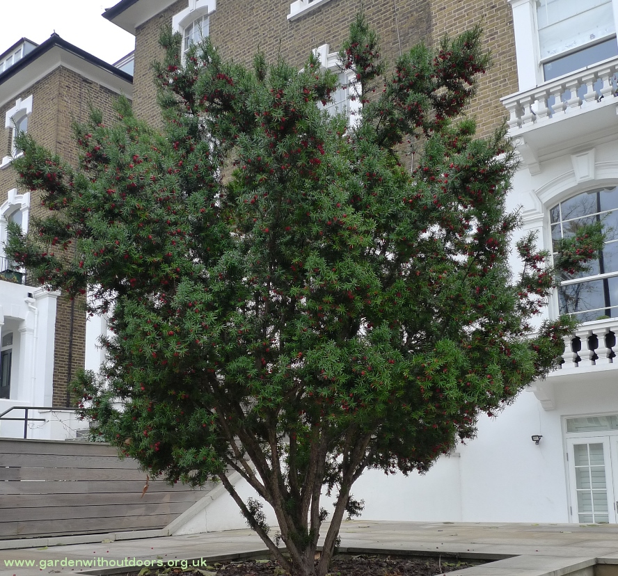 November 2018 with lots of "berries" (actually immature cones: seed surrounded by a fleshy aril)